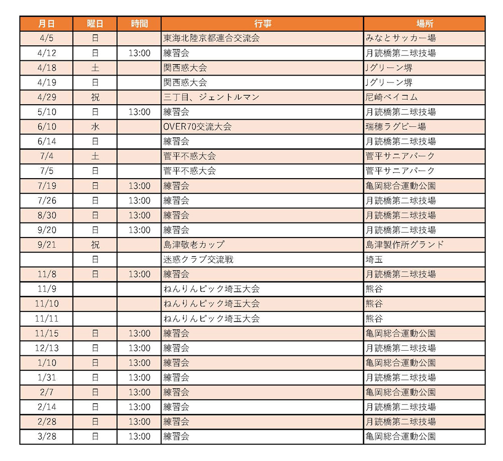 練習 総会 16時から がんこ楽々荘 会費5500円