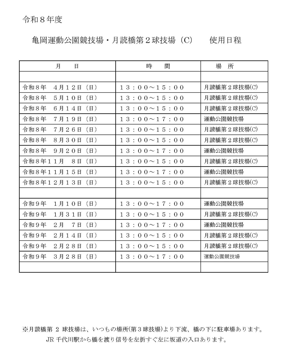 4/12(日) 13:00~ 月読橋第2球技場